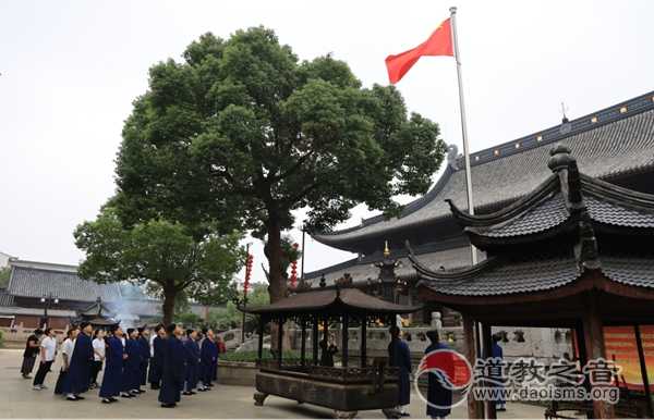 上午8点整,中华人民共和国五星红旗由玄妙观14位道长护送到升旗台,在嘹亮、庄严雄壮的国歌声中冉冉升起,迎风飘扬,大众齐唱国歌并行注目礼。在中华人民共和国成立70周年之际举行升国旗仪式,有着特殊的意义,是加强全体道众爱国主义学习教育的有效途径,是玄妙观全体道众爱国爱教的具体体现。通过升国旗仪式可更好的培植全体道众的爱国心和向心力,激发爱国热情,培养爱国情操,进一步增强国家意识、公民意识和中华民族共同体意识,增强民族自信心、自豪感和国家荣誉感,增强参与和服务社会主义现代化建设的责任感和使命感。