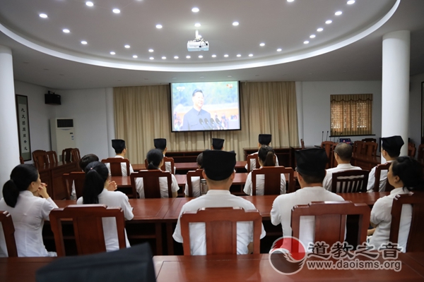 上午9点,苏州玄妙观道众齐聚玄妙观会议厅,认真收看庆祝中华人民共和国成立70周年大会。在聆听了习近平总书记的重要讲话后,大众感到无比的振奋和鼓舞,看到一个个整齐的方队,大家感到无比的激动和自豪。